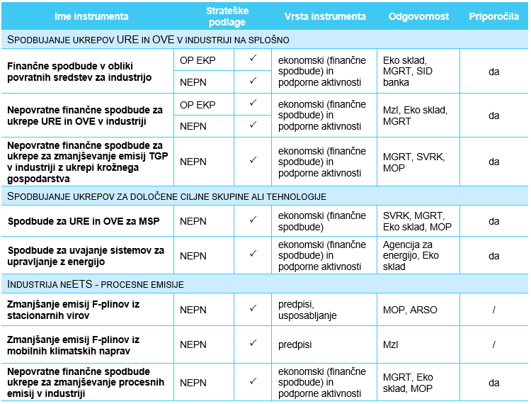 Podrobnosti o izvajanju instrumentov za zmanjšanje emisij TGP v sektorju industrija so predstavljene v kataloških zapisih.