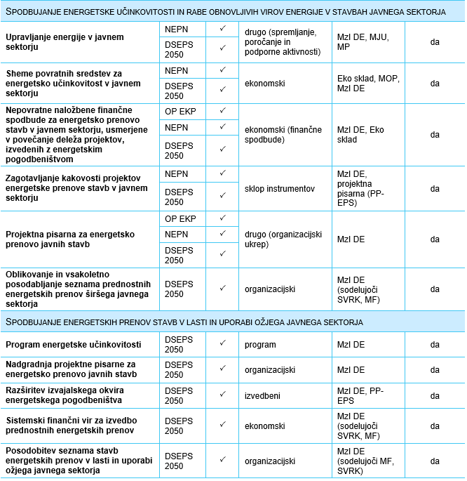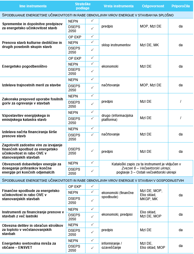 Podrobnosti o izvajanju instrumentov za zmanjšanje emisij TGP v sektorju stavbe so predstavljene v kataloških zapisih.