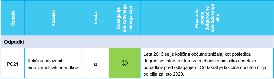 Pregled izvajanja ukrepov na področju odpadkov za leto 2020
