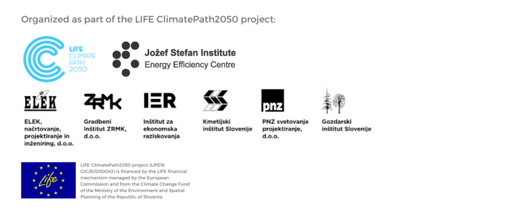 The Energy Efficiency Centre of the Jožef Stefan Institute and the LIFE ClimatePath2050 consortium partners announce the final conference of the project: Designing Pathways toward Carbon Neutrality, which will take place from 6 to 8 October 2021 and will be organized in a hybrid form. The conference intends to further connect the modelling community and decision-makers, including stakeholders participating […]