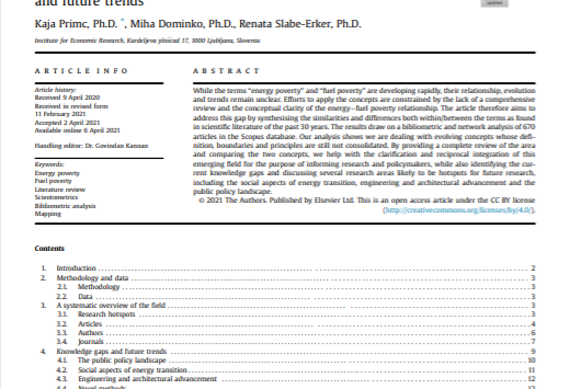 Citation: PRIMC, Kaja, DOMINKO, Miha, SLABE ERKER, Renata. 30 years of energy and fuel poverty research : a retrospective analysis and future trends. Journal of cleaner production. 2021, vol. 301, DOI: 10.1016/j.jclepro.2021.127003.